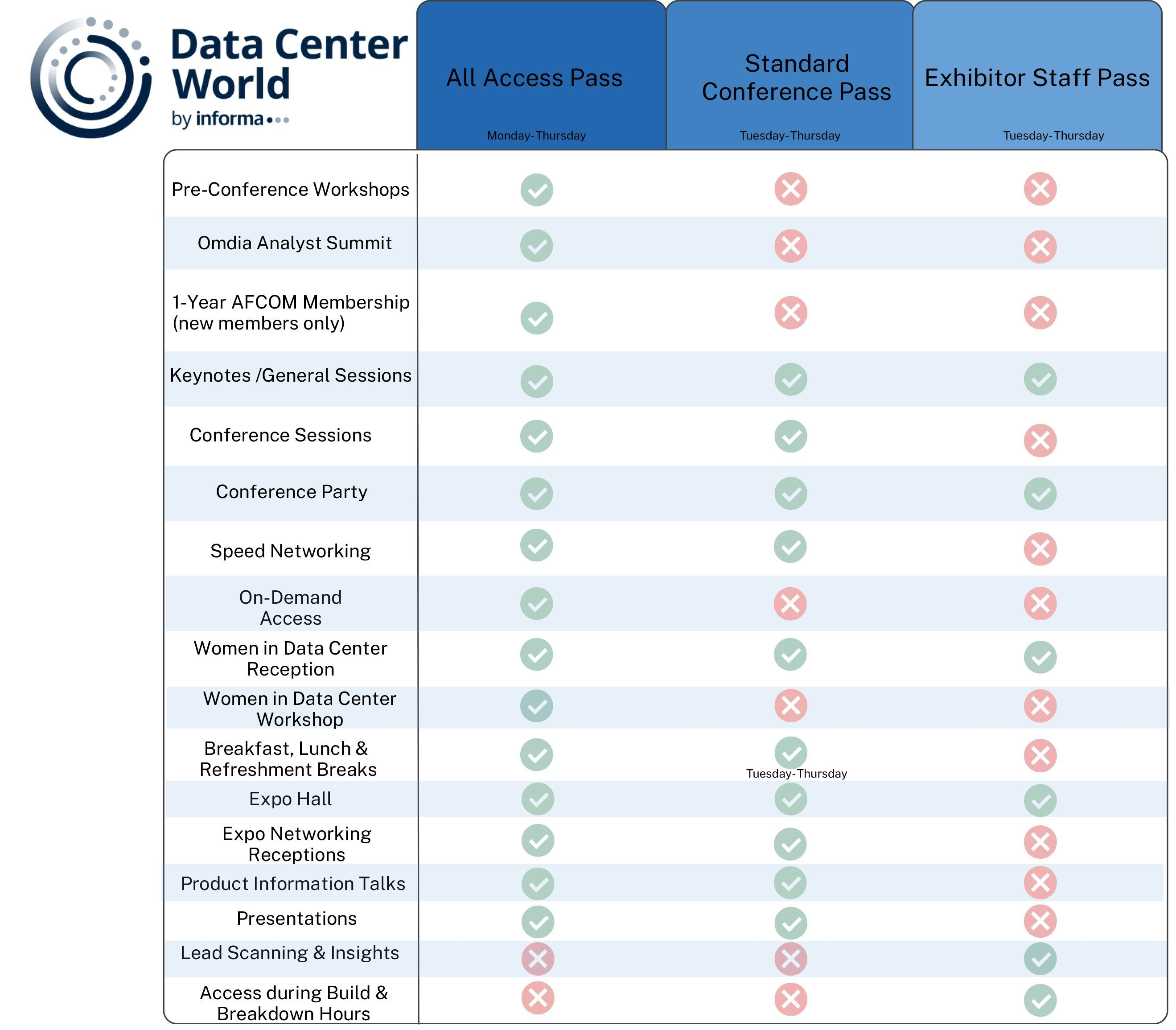 To see what access levels each pass comes with, please review the table below: